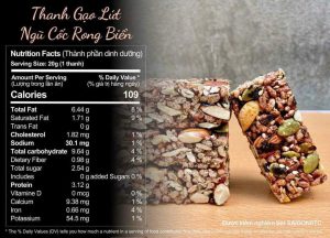 - Thành phần chính: Gạo lứt huyết rồng, rong biển Hàn Quốc, hạnh nhân, hạt điều, bí xanh, mè và mật ong tự nhiên.